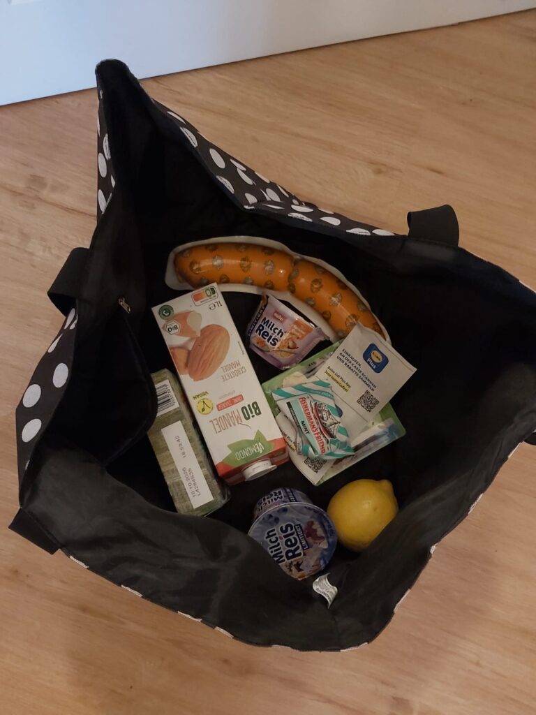 Wieder zuhause. Jetzt Mini-Einkauf auspacken.