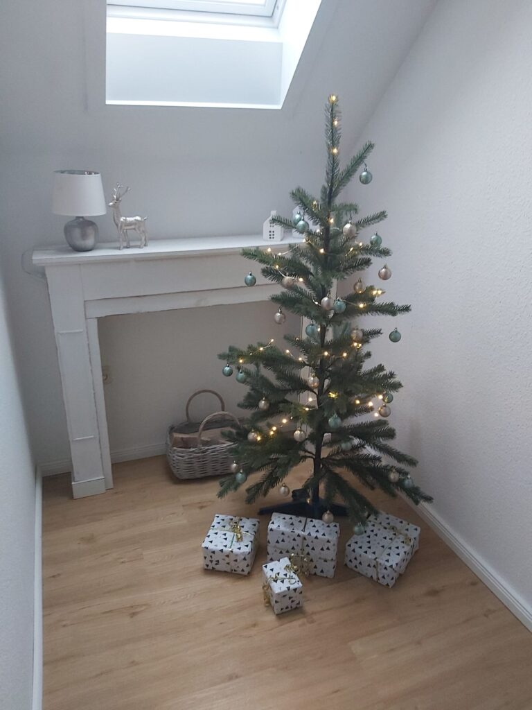 - Und auch der erste Tannenbaum im Obergeschoss steht. Am liebsten hätte mein Mann den echten auch gleich schon fürs Wohnzimmer gekauft.