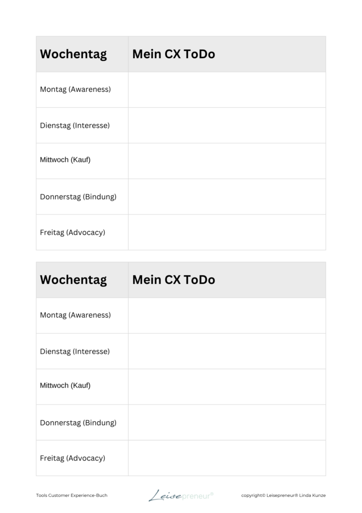 Dein roter Faden durch die Woche – für kleine tägliche Impulse, die Deine Kundenerfahrung sofort verbessern.