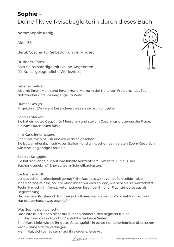 Sophie ist keine klassische Business-Figur mit Hochglanz-Profil. Sie ist eine Solo-Unternehmerin wie viele von uns. Mit Ideen im Kopf, Kunden im Herzen – und oft zu wenig Zeit, alles „perfekt“ zu machen.
