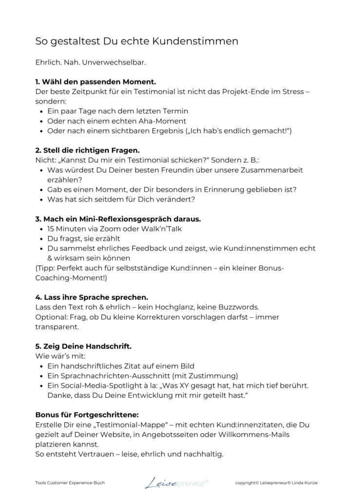 Damit das Gelesene nicht nur nett klingt, sondern wirklich wirkt, findest Du hier Deine kleinen Umsetzungshelfer – alle direkt als PDF downloadbar: